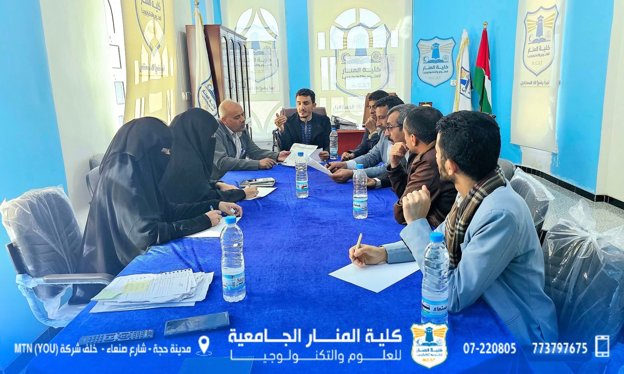عقد مجلس شؤون الطلاب بكلية المنار الجامعية إجتماعه الدوري برئاسة المسجل العام(رئيس المجلس) أ/محمد صالح الحداد، وعضوية كلاً من رئيس قسم العلوم المالية والإدارية د/يحيى العبدلي، ورئيس قسم الشريعة والقانون د/عبدالخالق الفيل، ومدير إدارة الأنشطة أ/عبدالملك الحداد، وإدارة شؤون الطلاب أ/أبتسام النصيري، وإدارة المتابعة والأرشفة أ/منى المتوكل.